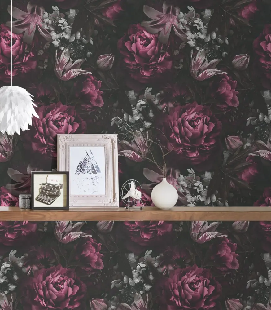 A.S. Création Vinyltapete - 385094 - Lila Schwarz Florale Tapete
