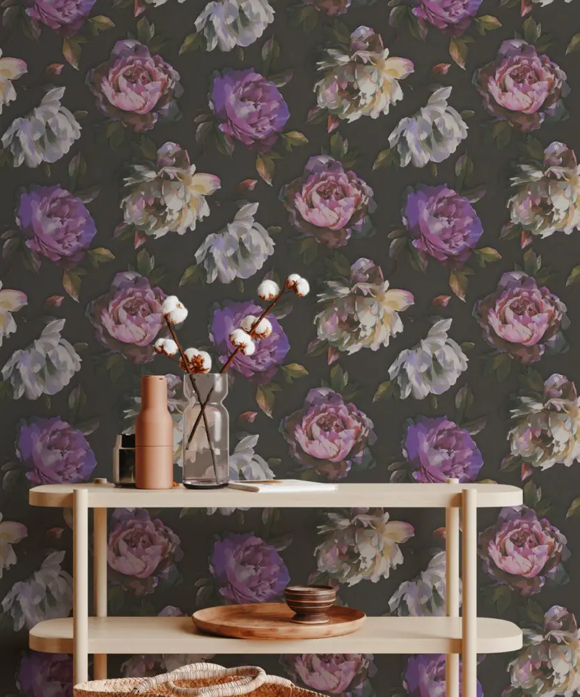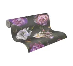 A.S. Création Vinyltapete - 396091 - Schwarz Violett Blumen
