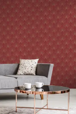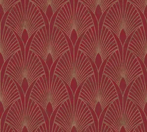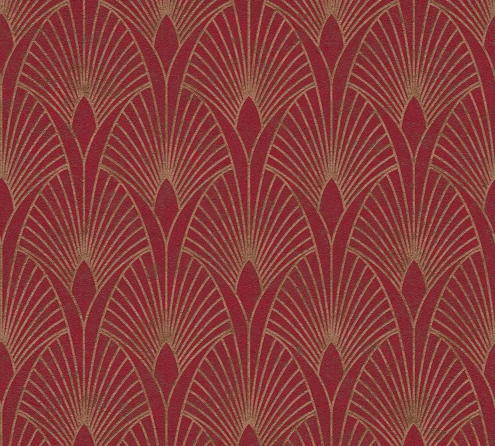 Livingwalls Vinyltapete - 374274 - Rot Gold Art Deco Tapete