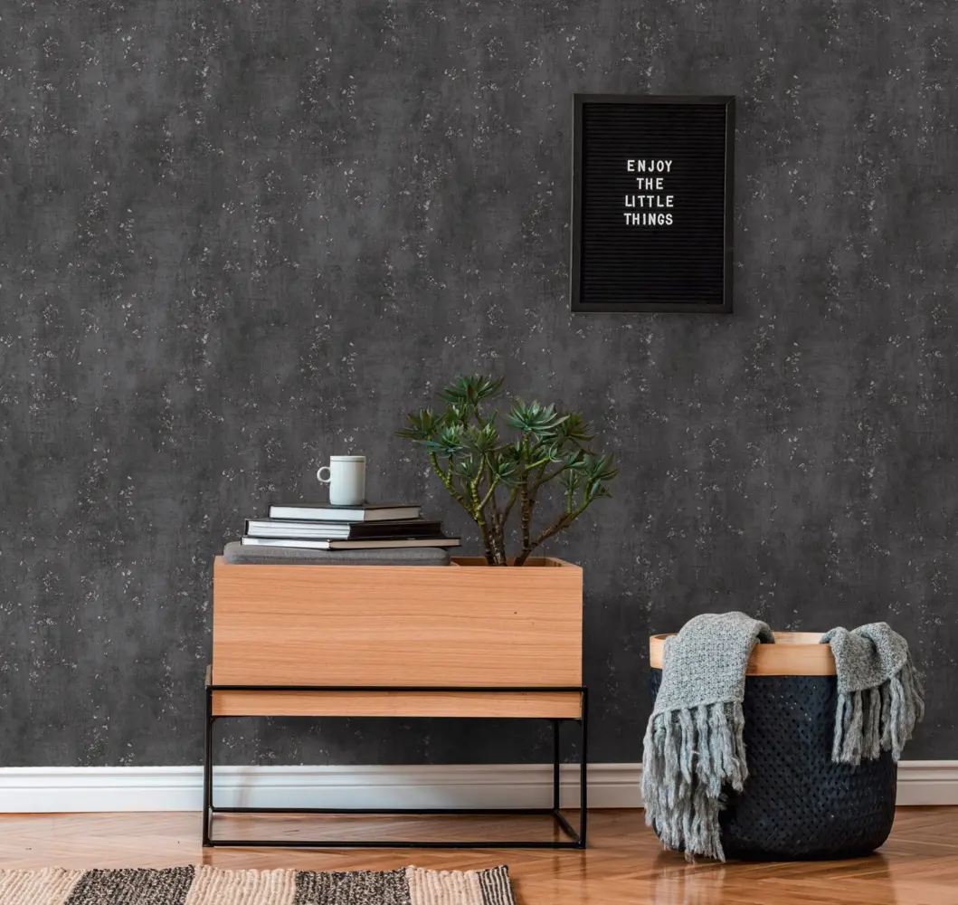 A.S. Création Vinyltapete - 378404 - Schwarz Tapete in Betonoptik
