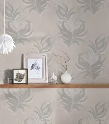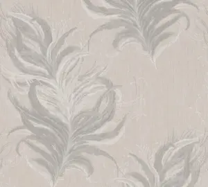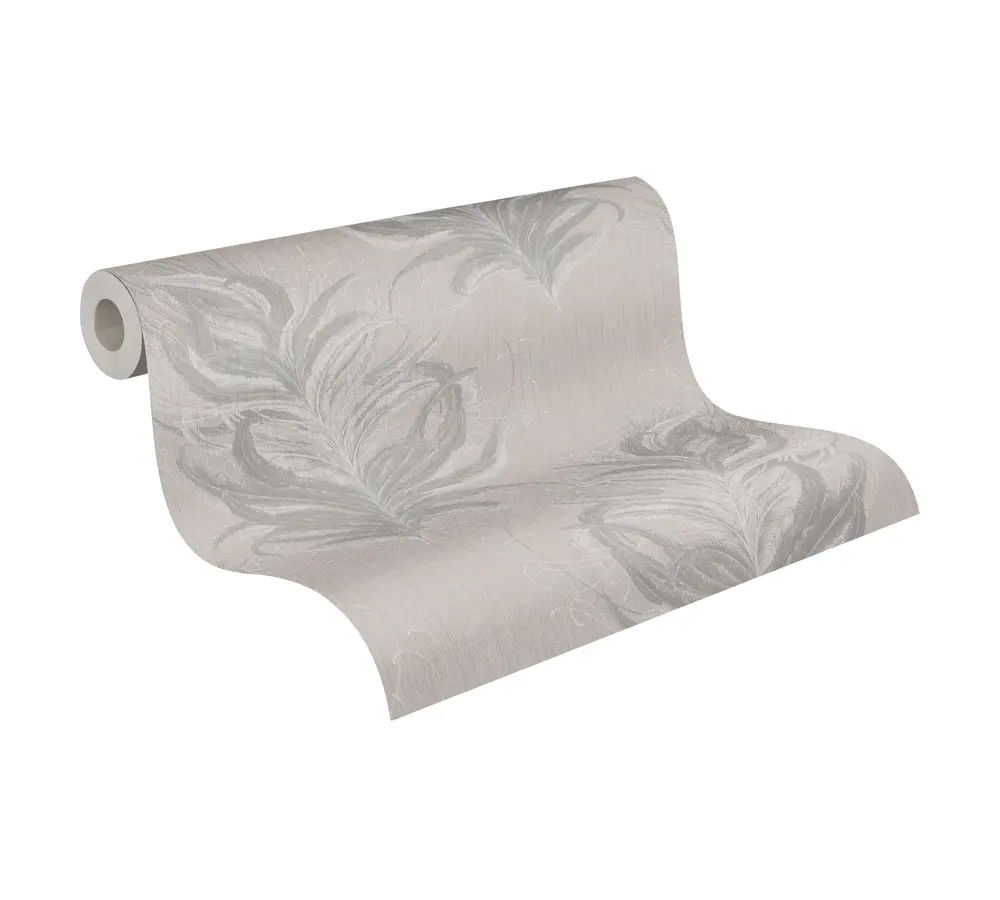 Livingwalls Vinyltapete - 380092 - Grau Weiß Tapete mit Federn