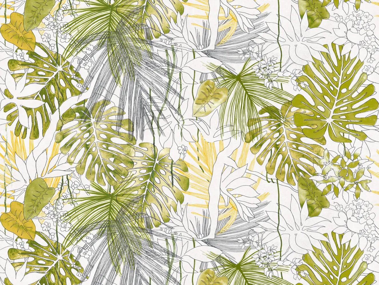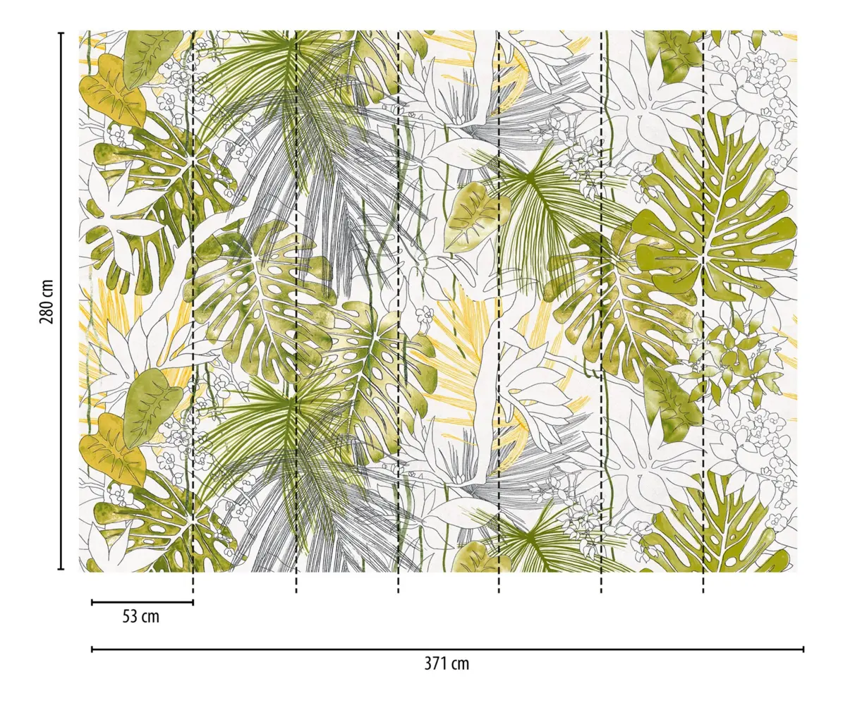 Livingwalls Vinyltapete - 382321 - Grün Weiß Dschungeltapete