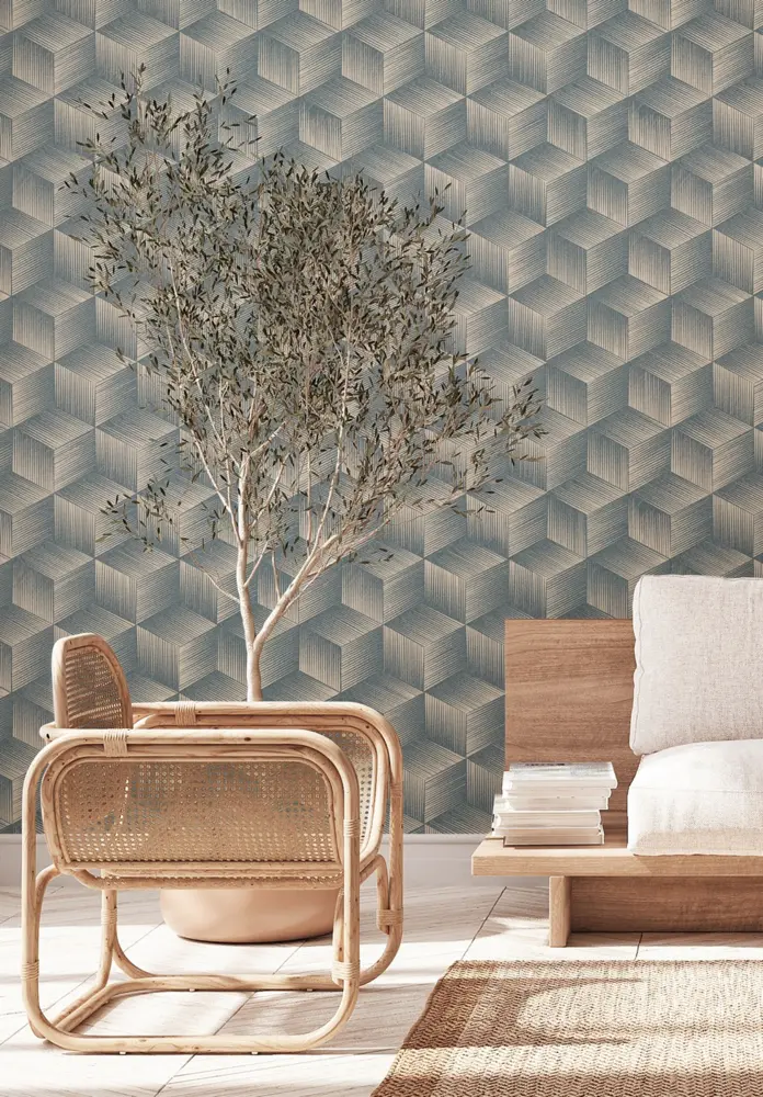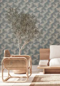A.S. Création Vinyltapete - 385063 - Blau Beige 3D Tapete