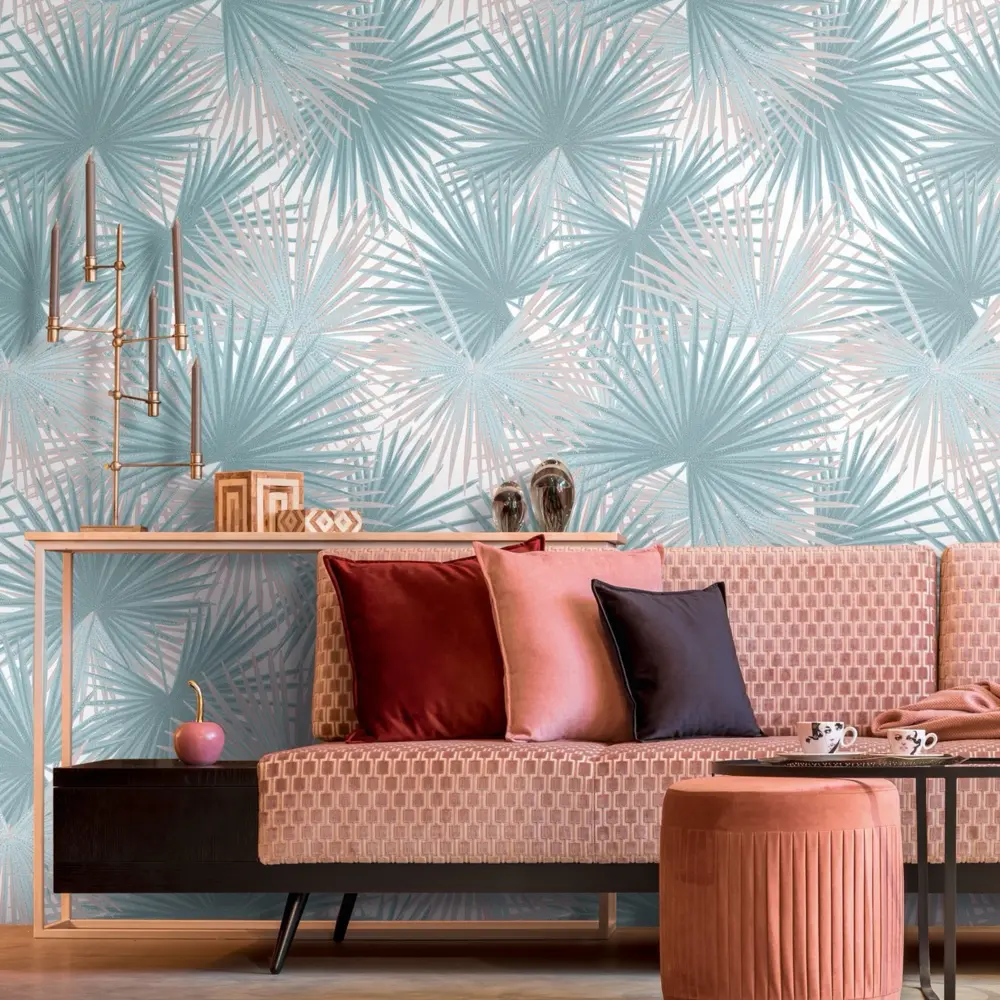 Livingwalls Vinyltapete - 391843 - Blau Beige Dschungel