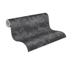 Livingwalls Vliestapete - 378672 - Grau Blau Florale Tapete