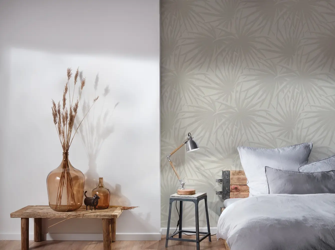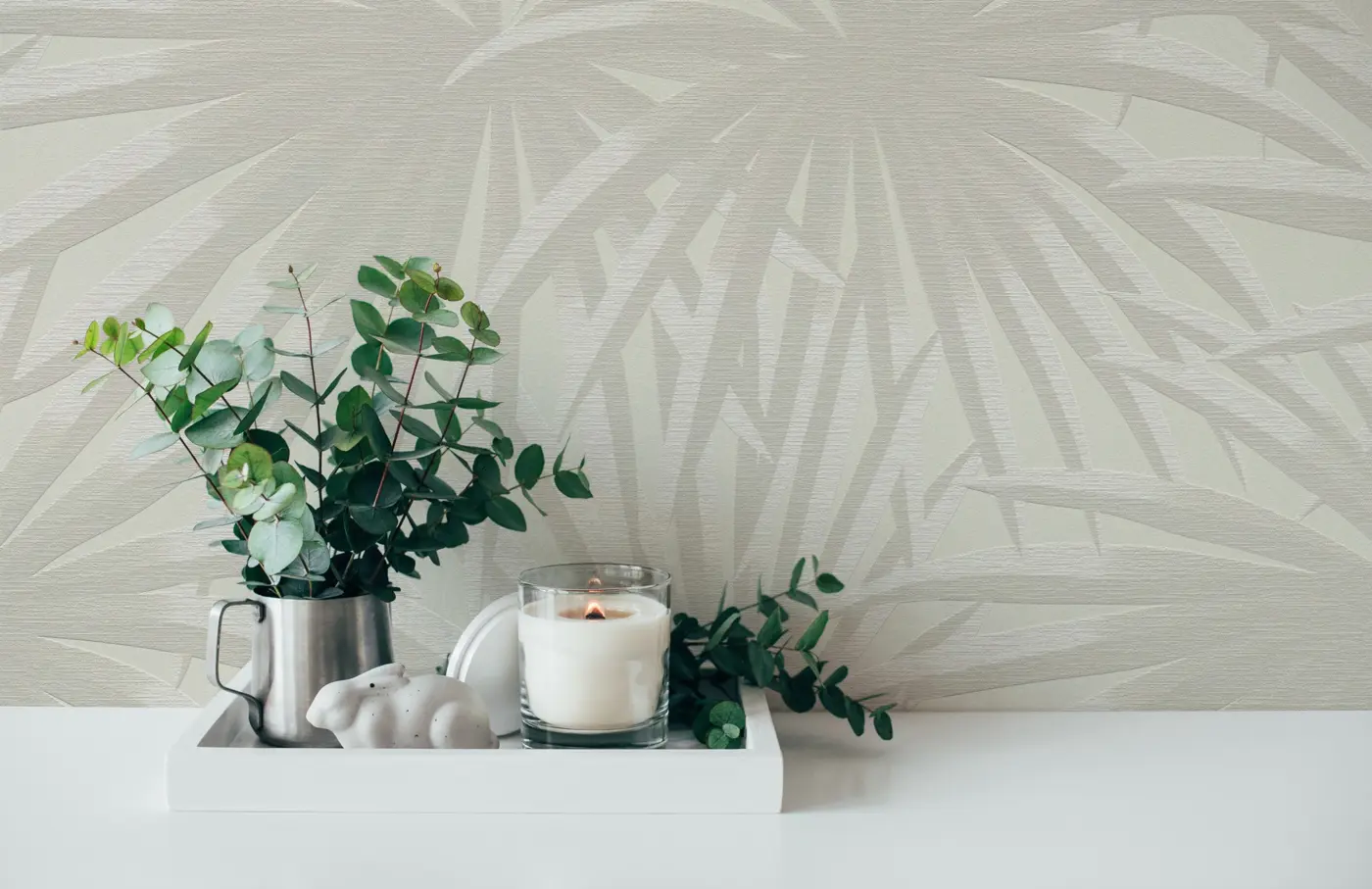 A.S. Création Vliestapete - 393381 - Weiß Grau Palmentapete